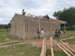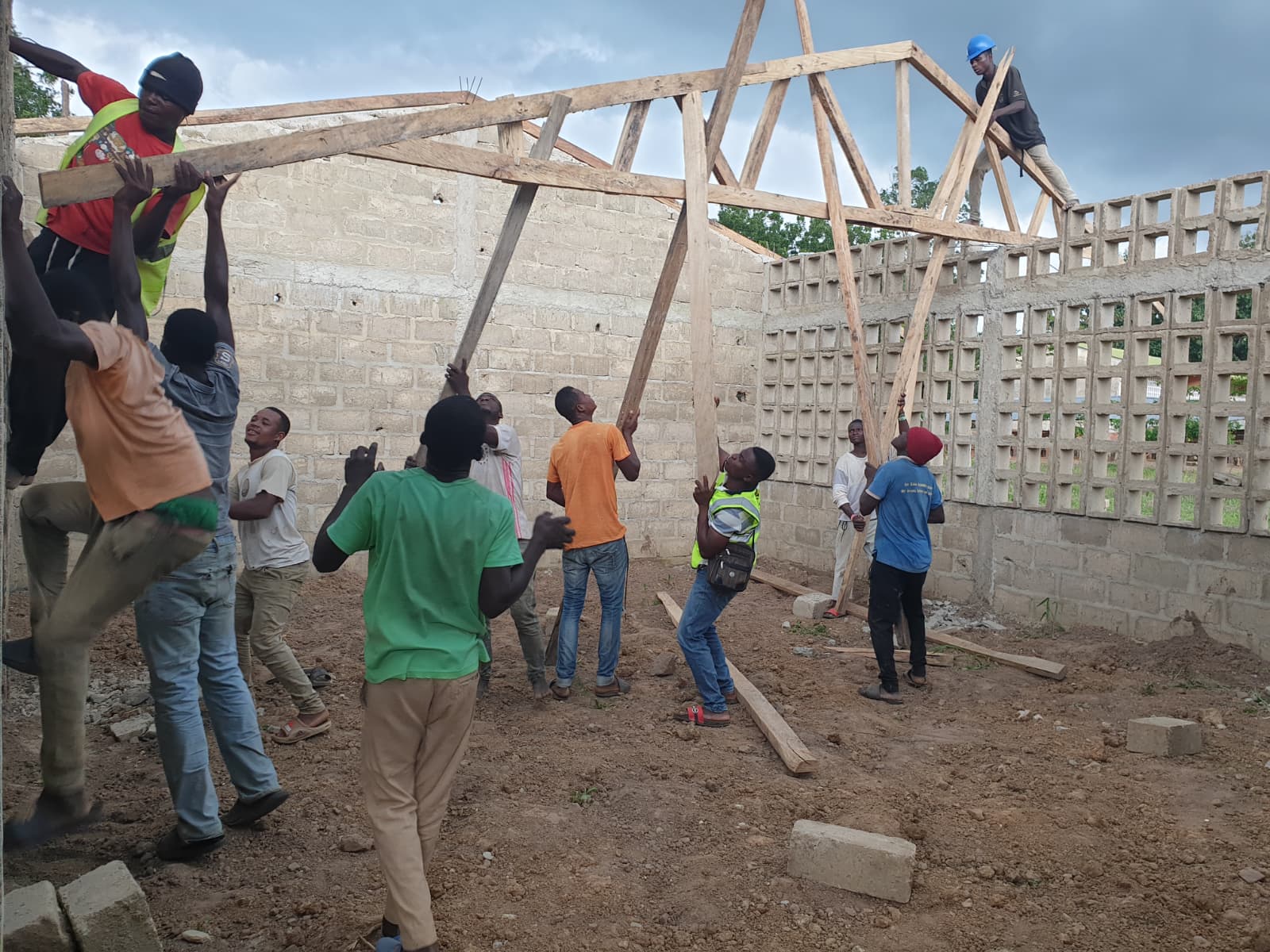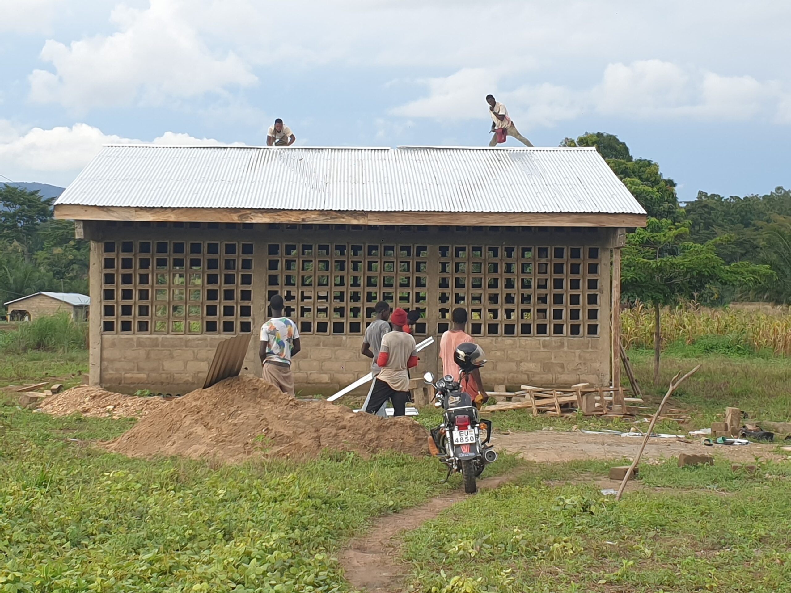 In Sodo konnten wir in der Zeit die Reparatur der Toiletten veranlassen, in Patatoukou hatte Kindergärtnerin Elise schnell Maurer, Eisenbieger und Dachdecker zusammengerufen, um die Überdachung neu aufzustellen, die ein heftiger Sturm zum Einsturz gebracht hatte. Diesmal war die Konstruktion deutlich solider, um einen weiteren Schaden zu vermeiden.