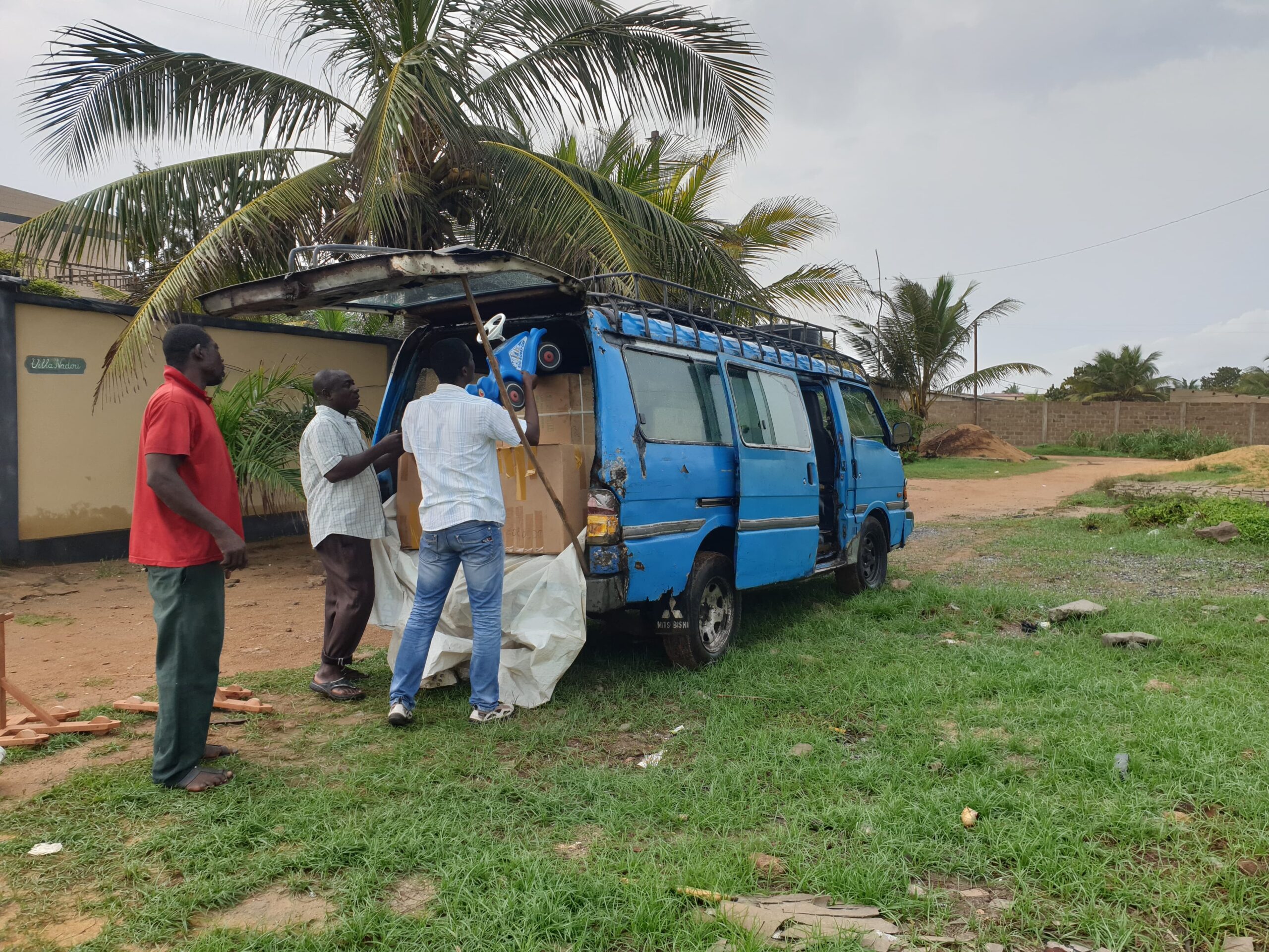 Noch in Sodo erhielt ich die Info von Amouzou Cargo, dass zwei Ladungen mit dem Seecontainer angekommen waren. Mit einem Kombi konnten wir auf Ladefläche und auf dem Dach alles auf einmal von Lomé Agoé nach Agbodrafo transportieren.